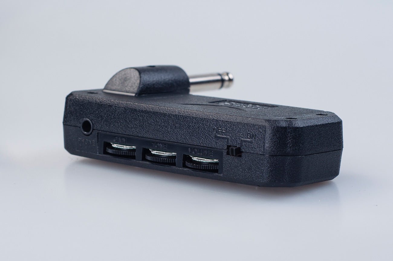 This neat looking mini JOYO guitar amplifier comes with 9V battery and headphones, offers two different sounds from clean to distortion and is portable with enough output to practice or bring outside and enjoy. This is really the most feature-packed and tone-VOLUME-enable little amp on the market.