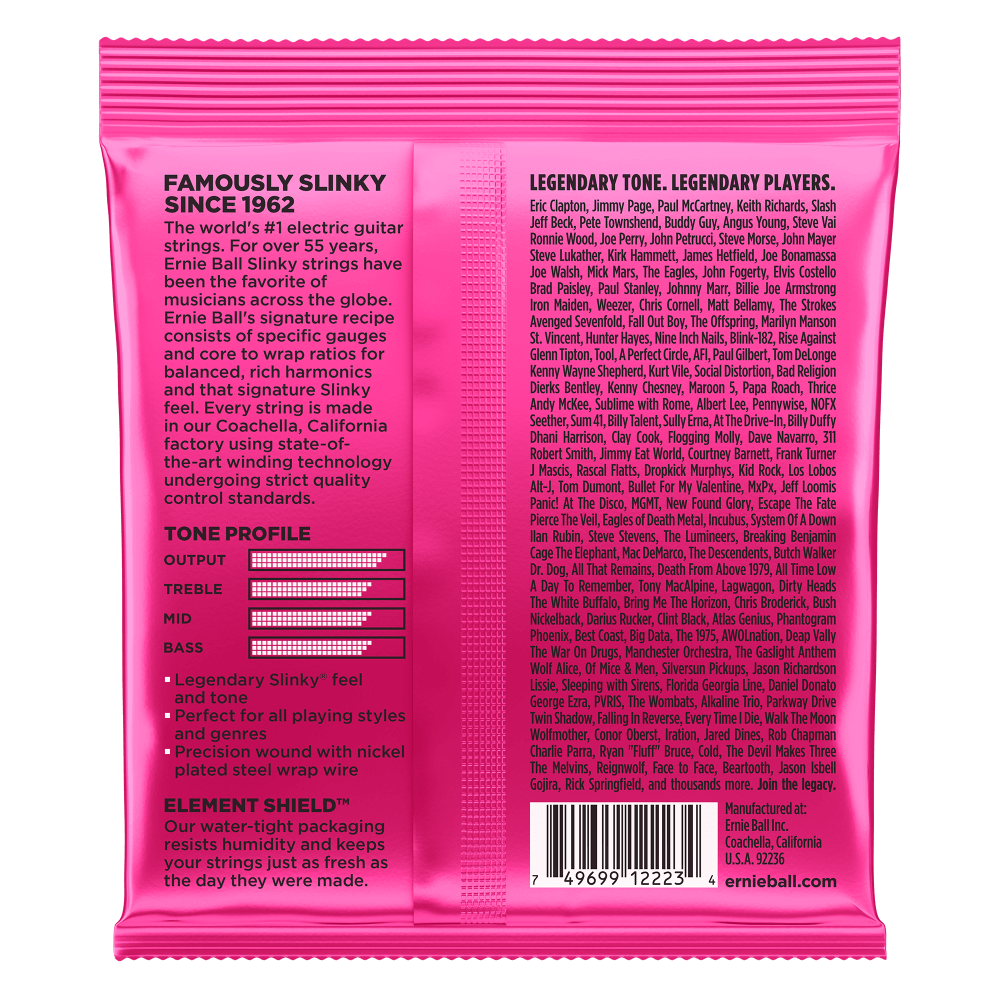 Ernie Ball Nickel Wound Electric Guitar Strings are made from nickel plated steel wire wrapped around tin plated hex shaped steel core wire. The plain strings are made of specially tempered tin plated high carbon steel producing a well balanced tone for your guitar. Gauges .009, .011, .016, .024w, .032, .042