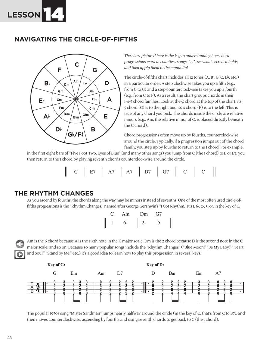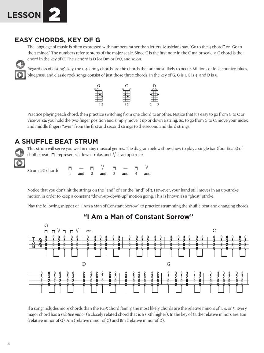 This mandolin book features video and print lessons by world-renowned author Fred Sokolow on: mandolin fundamentals; music reading; tuning; chords; scales & basic theory; strumming; arpeggios; double stops; moveable chop chords; sawing & tremolo; and chord/melody playing. You also get to strum & pluck along with 28 songs including: Ain't Misbehavin' • Hallelujah • Hey Jude • I Am a Man of Constant Sorrow • Knockin' on Heaven's Door • Maggie May • Rocky Top • Stand by Me • Wayfaring Stranger • and many more.